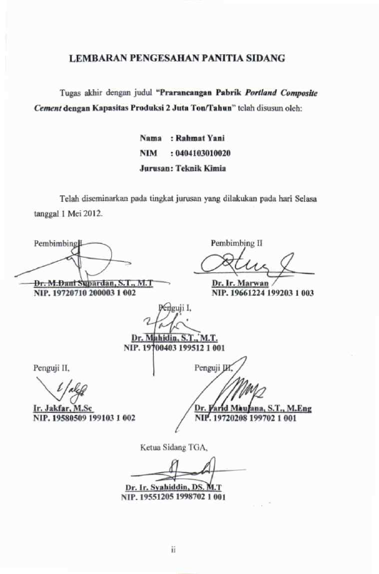 Rahmat Yani, PRARANCANGAN PABRIK PORTLAND COMPOSITE CEMENT DE.NGAN KAPASITAS PRODUKSI 2JUTA TON/TAHUN. Banda Aceh Fakultas Teknik,2012