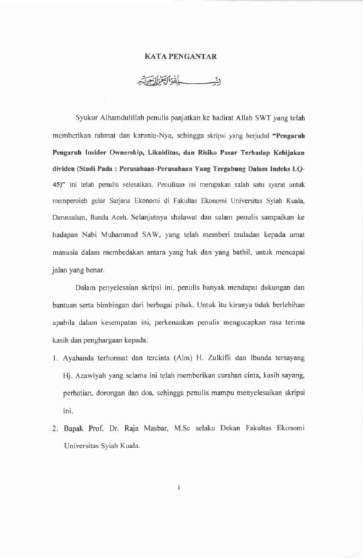 Nur Ismi, PENGARUH INSIDER OWNERSHIP, LIKUIDITAS, DAN RISIKO PASAR TERHADAP KEBIJAKAN DIVIDEN PERUSAHAAN-PERUSAHAAN YANG TERGABUNG DALAM INDEQKS LQ-45. Banda Aceh Fakultas Ekonomi,2010