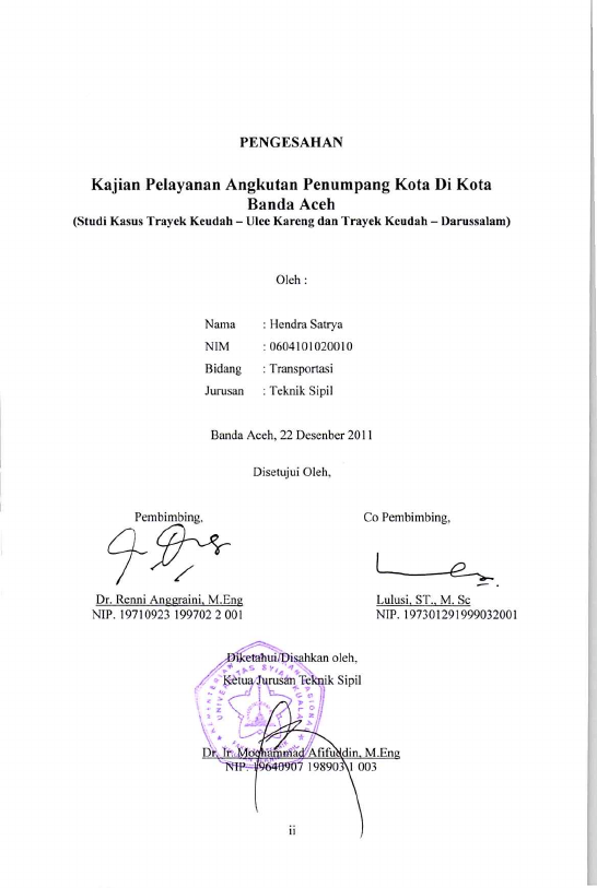 Hendra Satrya, KAJIAN PELAYANAN ANGKUTAN PENUMPANG KOTA DI KOTA BANDA ACEH (STUDI KASUS TRAYEK KEUDAH - ULEE KARENG DAN TRAYEK KEUDAH - DARUSSALAM). Banda Aceh Fakultas Teknik,2011