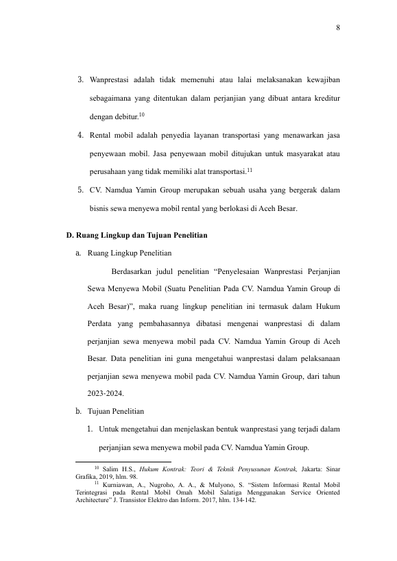 Baca Juga : WANPRESTASI DALAM PELAKSANAAN PERJANJIAN SEWA MENYEWA MOBIL DI CV WALID RENTCAR ACEH (Zaitun Zalia, 2024)