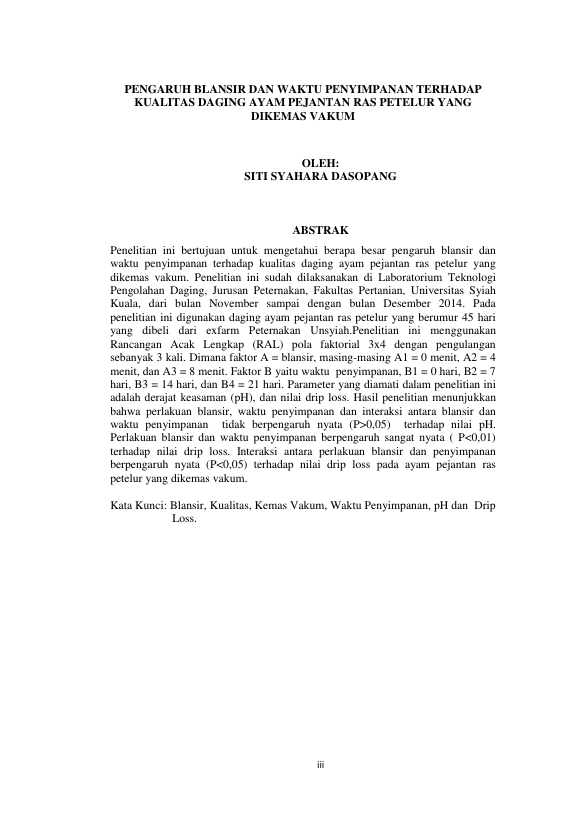 Baca Juga : ANALISIS KEBUSUKAN TERHADAP PENGARUH BLANSIR DAN WAKTU PENYIMPANAN PADA DAGING AYAM PEJANTAN RAS PETELUR YANG DIKEMAS VAKUM (novinda cahyani, 2015)
