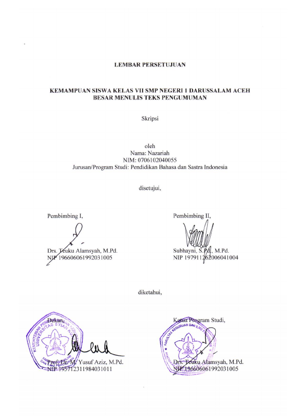 Baca Juga : KEMAMPUAN SISWA KELAS VII SMP NEGERI 5 SEUNAGAN MENULIS TEKS PENGUMUMAN (Mardieana, 2021)