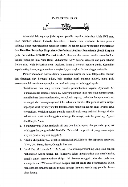 Yuni Hardiyani, PENGARUH PENGALAMAN DAN KEAHLIAN TERHADAP SKEPTISISME PROFESIONAL AUDITOR PEMERINTAH (STUDI EMPIRIS PADA PERWAKILAN BPK-RI PROVINSI ACEH ). Banda Aceh Fakultas Ekonomi,2010