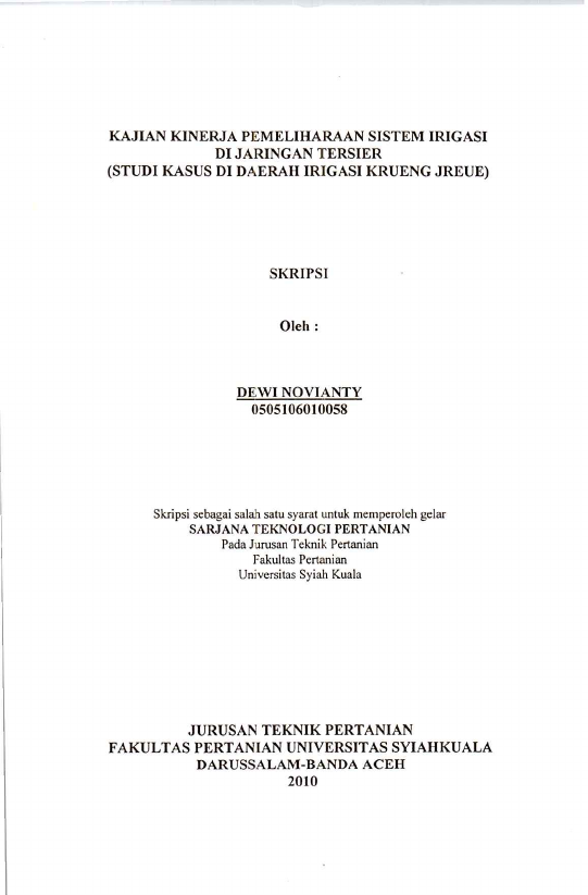 Baca Juga : EVALUASI KINERJA JARINGAN IRIGASI DAERAH IRIGASI BARO KANAN KABUPATEN PIDIE (Husaini, 2019)