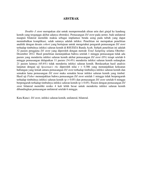 Baca Juga : PENGARUH PEMASANGAN DOUBLE-J STENT TERHADAP TIMBULNYA LOWER URINARY TRACT SYMPTOMS DI RSUDZA BANDA ACEH (T. Okky Radhinal Akhyar, 2015)