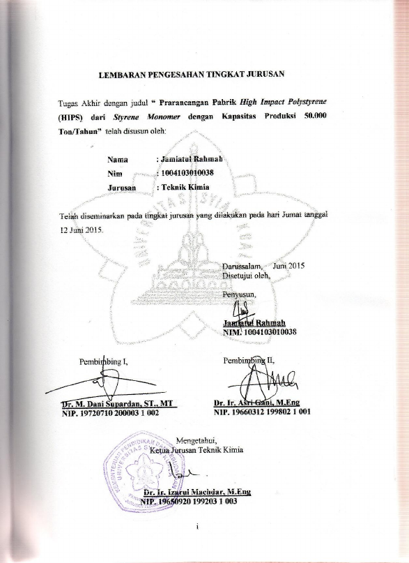 Baca Juga : PRARANCANGAN PABRIK HIGH IMPACT POLYSTIRENE (HIPS) DENGAN KAPASITAS PRODUKSI 55.000 TON/TAHUN (M ANDRIAN JAUHARI, 2021)