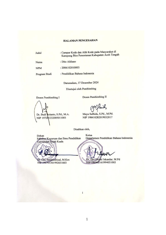 Baca Juga : ALIH KODE DAN CAMPUR KODE BAHASA GAYO DAN BAHASA INDONESIA PADA TUTURAN MAHASISWA FAKULTAS KEGURUAN DAN ILMU PENDIDIKAN UNIVERSITAS SYIAH KUALA (NAZWA HANIFA, 2025)