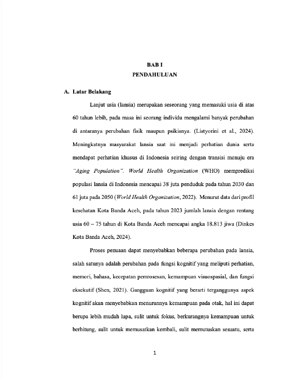 Baca Juga : GAMBARAN FUNGSI KOGNITIF PADA LANSIA DI KECAMATAN INGIN JAYA KABUPATEN ACEH BESAR (PUTRI NABILLA, 2026)