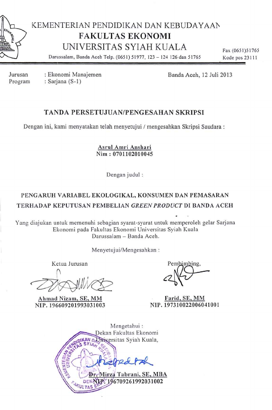 Asrul Amri Anshari, PENGARUH VARIABEL EKOLOGIKAL, KONSUMEN DAN PEMASARAN TERHADAP KEPUTUSAN PEMBELIAN GREEN PRODUCT DI BANDA ACEH. Banda Aceh Fakultas Ekonomi,2013