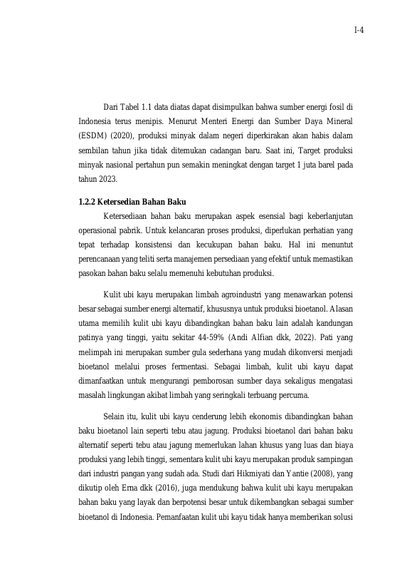 Cut Rahmi Azalla, PRARANCANGAN PABRIK BIOETANOL BERBAHAN BAKU LIMBAH KULIT UBI KAYU (MANIHOT ESCULENTA) DENGAN PROSES SSF (SIMULTANEOUS SACCHARIFICATION AND FERMENTATION) DENGAN KAPASITAS 41.000 TON/TAHUN. Banda Aceh Fakultas Teknik Kimia,2025