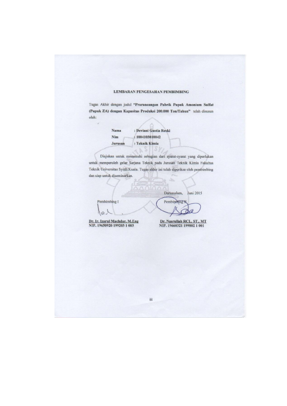 Baca Juga : PRARANCANGAN PABRIK PUPUK AMONIUM SULFAT (PUPUK ZA) DENGAN KAPASITAS PRODUKSI 200.000 TON/TAHUN (Deviani Gustia Reski, 2015)