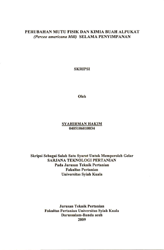 Baca Juga : PERUBAHAN MUTU FISIK DAN KIMIA BUAH ALPUKAT (PERCEA AMERICANA MILL) SELAMA PENYIMPANAN (Syahirman Hakim, 2025)