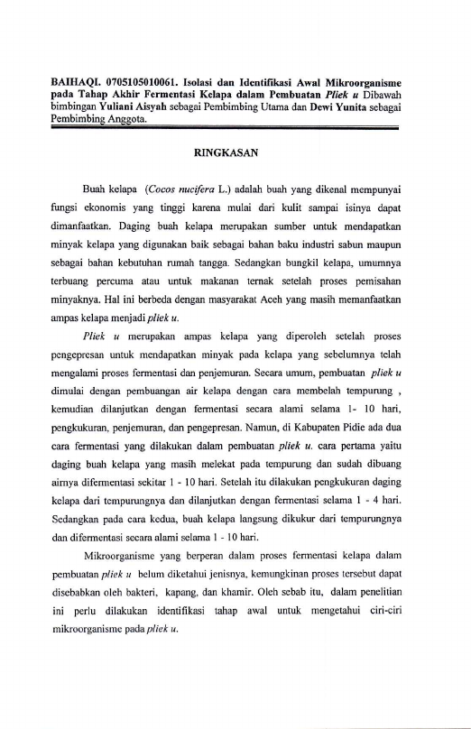 Baca Juga : ISOLASI DAN IDENTIFIKASI AWAL MIKROORGANISME PADA TAHAP AKHIR FERMENTASI KELAA DALAM PEMBUATAN PLIEK U (Baihaqi, 2025)