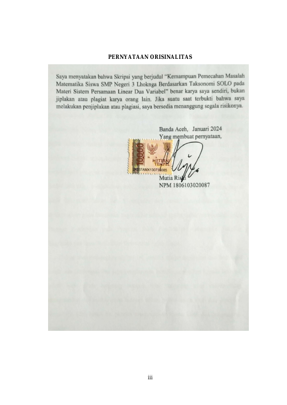 Baca Juga : KEMAMPUAN PEMECAHAN MASALAH MATEMATIS SISWA PADA MATERI SPLDV DI SMP NEGERI 7 BANDA ACEH (Zahidah, 2026)