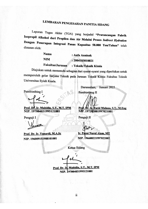Baca Juga : PRARANCANGAN PABRIK ISOPROPIL ALKOHOL DARI PROPILEN DAN AIR DENGAN PROSES INDIRECT HYDRATION DENGAN PENERAPAN INTEGRASI PANAS KAPASITAS 58.000 TON/TAHUN (Halimatussakdiah, 2025)