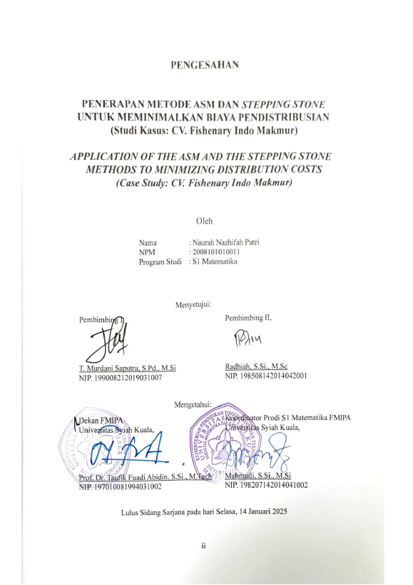 Baca Juga : OPTIMASI PENDISTRIBUSIAN AIR DENGAN MENGGUNAKAN METODE LEAST COST DAN METODE STEPPING STONE (STUDI KASUS: PDAM TIRTA DAROY BANDA ACEH) (Nabila Shafira, 2021)
