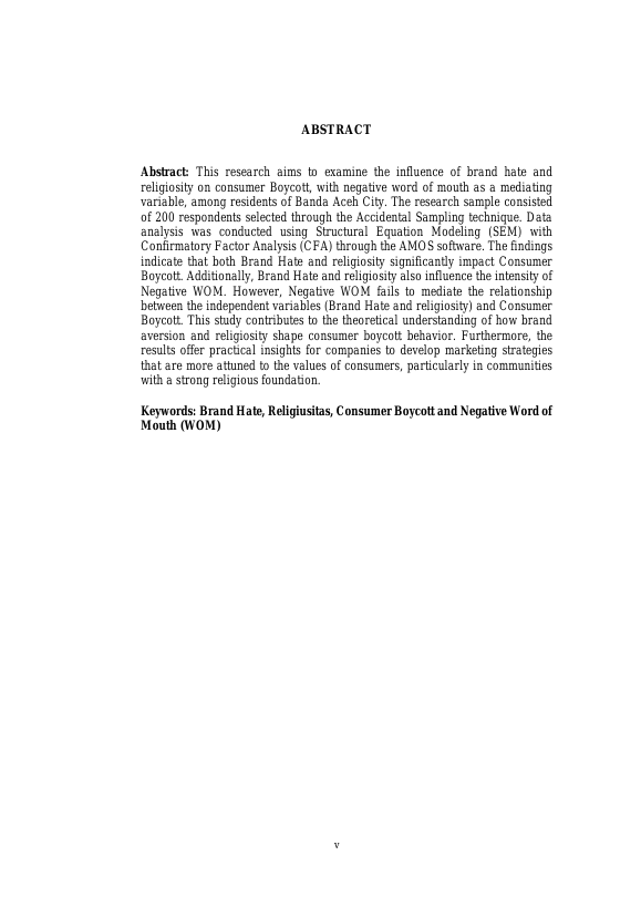 Rido Amalia, PENGARUH BRAND HATE DAN RELIGIUSITAS TERHADAP CONSUMER BOYCOTT PRODUK PENDUKUNG ISRAEL DENGAN INTENSITAS NEGATIVE WOM SEBAGAI VARIABEL MEDIASI. Banda Aceh Fakultas Ekonomi dan Bisnis Manajemen,2025