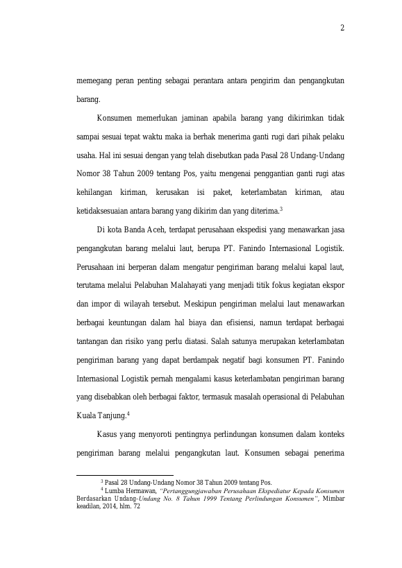sipriana wakei, PERLINDUNGAN KONSUMEN ATAS KETERLAMBATAN PENGIRIMAN BARANG MELALUI PENGANGKUTAN LAUT (PT. FANINDO INTERNASIONAL LOGISTIK KOTA BANDA ACEH). Banda Aceh Fakultas Hukum,2025