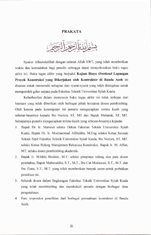 Murnianti, KAJIAN BIAYA OVERHEAD LAPANGAN PADA PROYEK KONSTRUKSI DI BANDA ACEH. Banda Aceh Fakultas Teknik,2011
