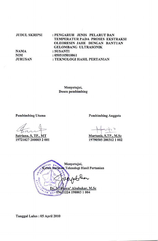 Baca Juga : EKSTRAKSI OLEORESIN DARI LIMBAH PENYULINGAN PALA (MYRISTICAFRAGRANS HOUTT.) MENGGUNAKAN METODE ULTRASONIK (Kiki Rezekiah, 2024)