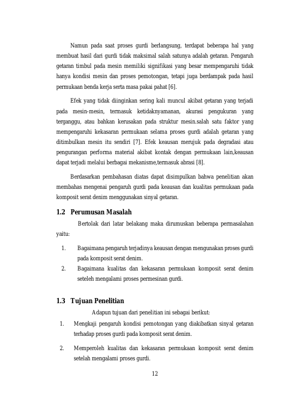 Husaini, KAJIAN EKSPERIMENTAL IDENTIFIKASI KEAUSAN DAN KUALITAS PERMUKAAN PROSES GURDI PADA PENGGUNAAN KOMPOSIT SERAT DENIM MENGGUNAKAN SINYAL GETARAN. Banda Aceh Teknik Mesin dan Industri,2025