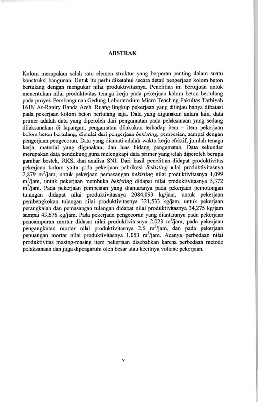 Baca Juga : ANALISA PRODUKTIVITAS TENAGA KERJA TERHADAP PEKERJAAN KOLOM BETON BERTULANG PADA PEMBANGUNAN GEDUNG RUANG KULIAH FAKULTAS TEKNIK UNIVERSITAS SYIAH KUALA (Tri Satrya Ginting, 2016)