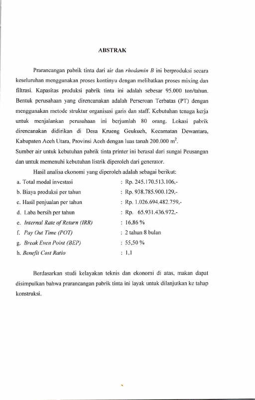 Baca Juga : PRARANCANGAN PABRIK TINTA PRINTER BERBASIS AIR DENGAN KAPASITAS 95.000 TON/TAHUN (Adriyadi, 2024)