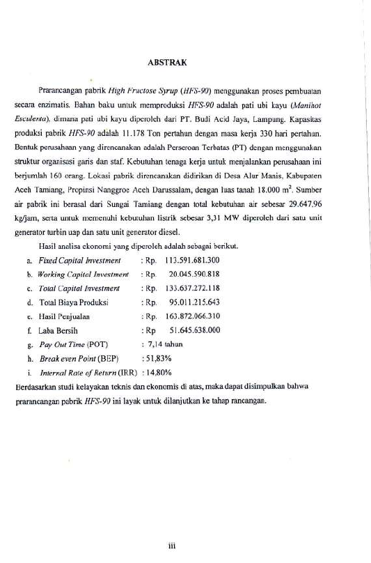Baca Juga : PRARANCANGAN PABRIK HIGH FRUCTOSE SYRUP (HFS-90) DARI PATI UBI KAYU DENGAN KAPASITAS PRODUKSI 11.178 TON/TAHUN (Rizkan Isnaini Sanofa, 2025)