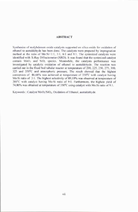 Baca Juga : PREPARASI KATALIS MOLIBDENUM OKSIDA (MOO3) BERPENYANGGA SILIKA OKSIDA (SIO2) UNTUK OKSIDASI ETANOL MENJADI ASETALDEHIDA (Tavy Junanda, 2024)