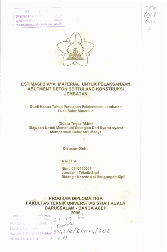 Baca Juga : PERENCANAAN BIAYA MATERIAL PADA PROYEK PEMBANGUNAN GEDUNG BPJN (BALAI PELAKSANA JALAN NASIONAL) TAHAP III (Muhammad Ricci Akbar, 2019)