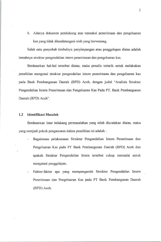 Suhaili Emsalha, ANALISIS STRUKTUR PENGENDALIAN INTERN PENERIMAAN DAN PENGELUARAN KAS PADA PT.BANK PEMBANGUNAN DAERAH (BPD) ACEH. Banda Aceh Fakultas Ekonomi,2006