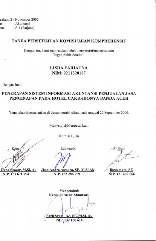 Lisda Fariatna, PENERAPAN SISTEM INFORMASI AKUNTANSI PENJUALAN JASA PENGINAPAN PADA HOTEL CAKRA DONYA BANDA ACEH. Banda Aceh Fakultas Ekonomi,2006