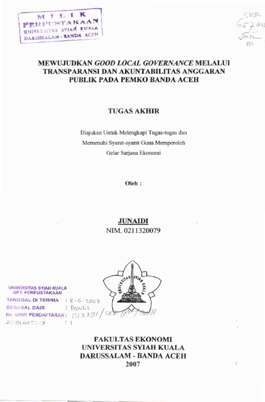 Baca Juga : PENERAPAN TRANSPARANSI INFORMASI PUBLIK SEBAGAI PERWUJUDAN PRINSIP GOOD GOVERNANCE DI BADAN PELAYANAN PERIZINAN TERPADU (BP2T) ACEH (Amri Wahid Hidayat, 2016)