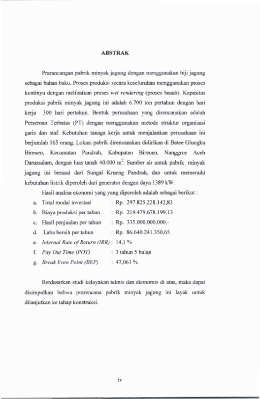 Baca Juga : PRARANCANGAN PABRIK MINYAK JAGUNG DARI BIJI JAGUNG DENGAN KAPASITAS PRODUKSI 15.000 TON/TAHUN (MUHAMMAD HUSNI, 2018)