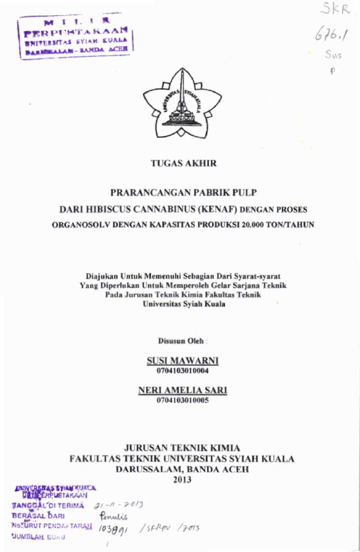 Baca Juga : PRARANCANGAN PABRIK PULP DARI HIBISCUS CANNABINUS (KENAF) DENGAN PROSES ORGANOSOLV DENGAN KAPASITAS PRODUKSI 20.000 TON/TAHUN (Neri Amelia Sari, 2025)