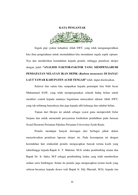 Roka Agustianda, ANALISIS FAKTOR-FAKTOR YANG MEMPENGARUHI PENDAPATAN NELAYAN IKAN DEPIK (Rasbora tawarensis) DI DANAU LAUT TAWAR KABUPATEN ACEH TENGAH. Banda Aceh Fakultas Pertanian,2013