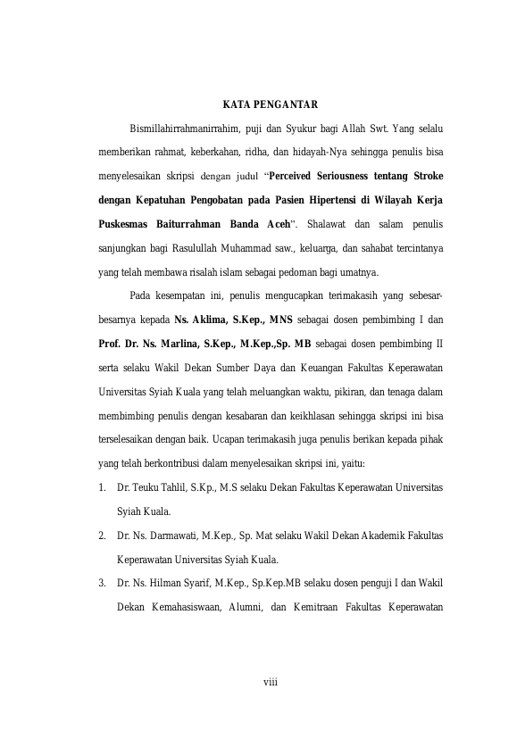 ESA SUSANTI, PERCEIVED SERIOUSNESS TENTANG STROKE DENGAN KEPATUHAN PENGOBATAN PADA PASIEN HIPERTENSI DI WILAYAH KERJA PUSKESMAS BAITURRAHMAN BANDA ACEH. Banda Aceh Fakultas Keperawatan,2025