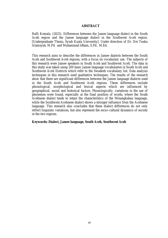 Baca Juga : DIALECTAL VARIATIONS OF THE JAMEE LANGUAGE SPOKEN IN LABUHANHAJI AND EAST LABUHANHAJI SUB-DISTRICTS (HIJRATUL YUNNA, 2025)