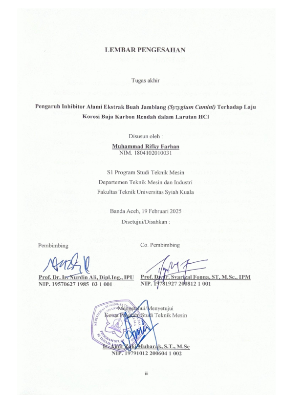 Baca Juga : PENGARUH INHIBITOR ALAMI EKSTRAK BUAH JAMBLANG (SYZYGIUM CUMINI) TERHADAP LAJU KOROSI BAJA KARBON RENDAH DALAM LARUTAN HCL. (MUHAMMAD RIFKY FARHAN, 2025)