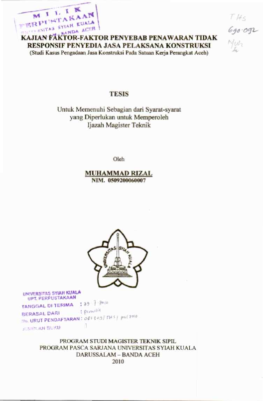 Baca Juga : FAKTOR – FAKTOR PENENTU EVALUASI PENAWARAN OLEH KONSULTAN PERENCANA DALAM PENGADAAN JASA KONSULTANSI (Muhammad Yofie, 2016)