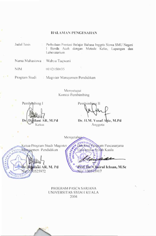 Baca Juga : PERBEDAAN PRESTASI BEL AJAR BAHASA INGGRIS SISWA SMU NEGERI I BANDA ACEH DENGAN METODE KELAS, LAPANGAN DAN LABORATORIUM (Wahyu Taqwani, 2025)