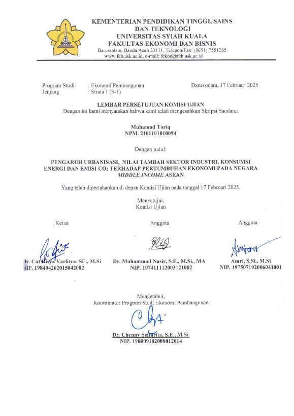 Baca Juga : PENGARUH NILAI TAMBAH SEKTOR INDUSTRI, PERTUMBUHAN EKONOMI DAN KONSUMSI ENERGI TERBARUKAN TERHADAP EMISI CO₂ DI ASEAN – 5 (YOGI PUTRA PRATAMA MARZUKI, 2026)