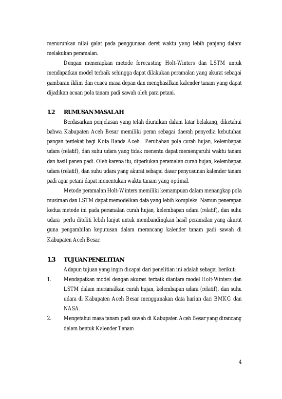 Ema Dwi Chairani, PENERAPAN METODE PERAMALAN HOLT-WINTERS DAN LSTM ( LONG SHORT-TERM MEMORY) DALAM PERANCANGAN KALENDER TANAM PADI SAWAH (STUDI KASUS : KABUPATEN ACEH BESAR). Banda Aceh Fakultas MIPA Statistika,2025