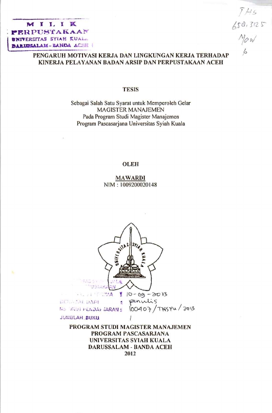 Baca Juga : PENGARUH MOTIVASI KERJA DAN LINGKUNGAN KERJA TERHADAP KINERJA PELAYANAN BADAN ARSIP DAN PERPUSTAKAAN ACEH (Mawardi, 2025)