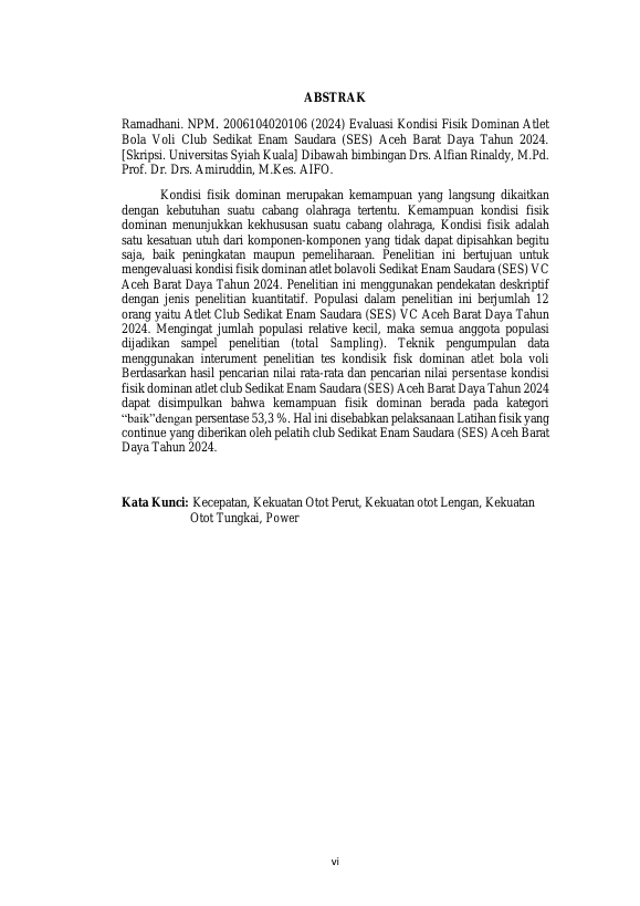 Ramadhani, EVALUASI KONDISI FISIK DOMINAN ATLET BOLA VOLI SEDIKAT ENAM SAUDARA (SES) VC ACEH BARAT DAYA TAHUN 2024. Banda Aceh Fakultas KIP Jasmani Kesehatan dan Rekreasi,2025