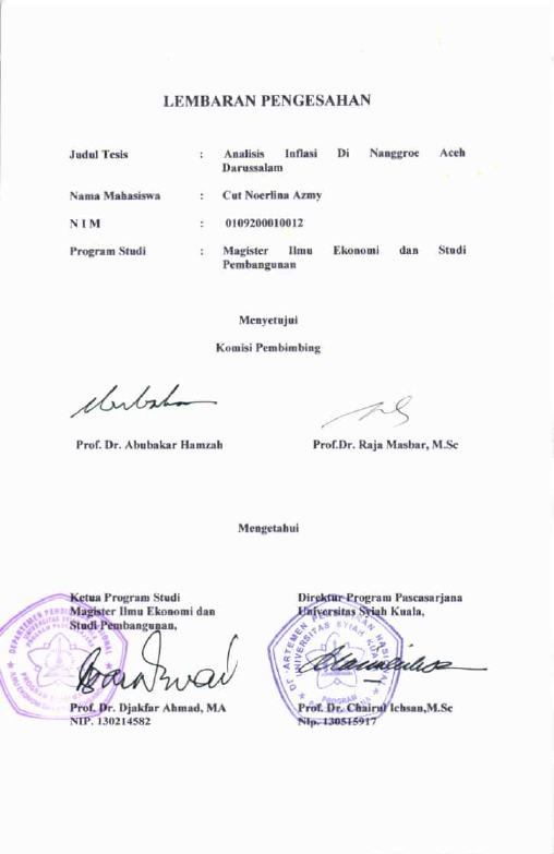 Cut Noerlina Azmy, ANALISIS INFLASI DI NANGGROE ACEH DARUSSALAM. Banda Aceh Magister Sains,2008