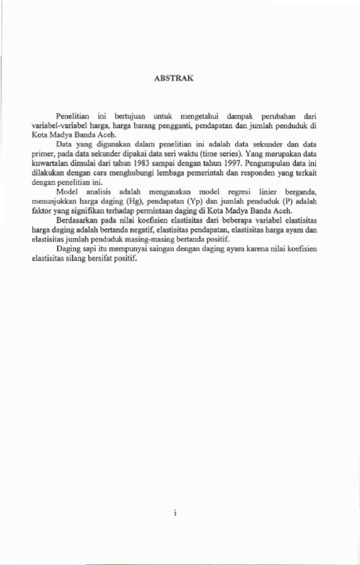 Yusni Hervy Yusuf, ANALISIS PERMINTAAN DAGING SAPI DI KOTAMADYA BANDA ACEH. Banda Aceh Magister Sains,1999
