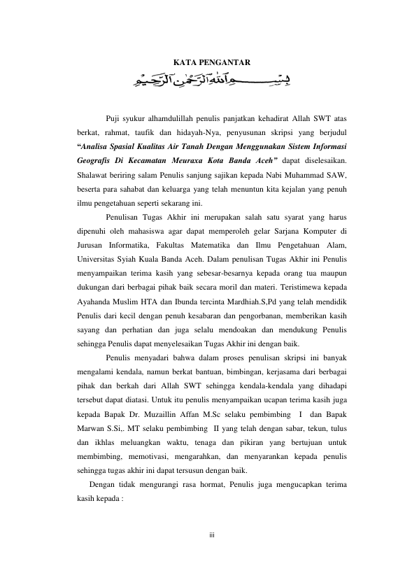 Zahrul Fahmi, ANALISA SPASIAL KUALITAS AIR TANAH DENGAN MENGGUNAKAN SISTEM INFORMASI GEOGRAFIS DI KECAMATAN MEURAXA KOTA BANDA ACEH. Banda Aceh Universitas Syiah Kuala,2015