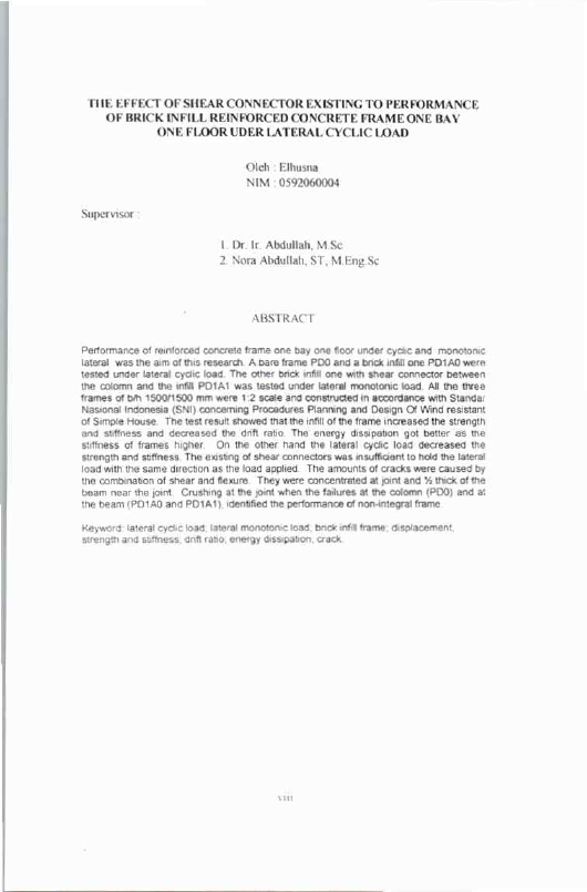 Baca Juga : PERILAKU LATERAL PORTAL BETON BERTULANG BERISI DINDING BATA MERAH DAN DINDING PRACETAK FERROFOAM CONCRETE (MUTIA INTAN SARI, 2017)