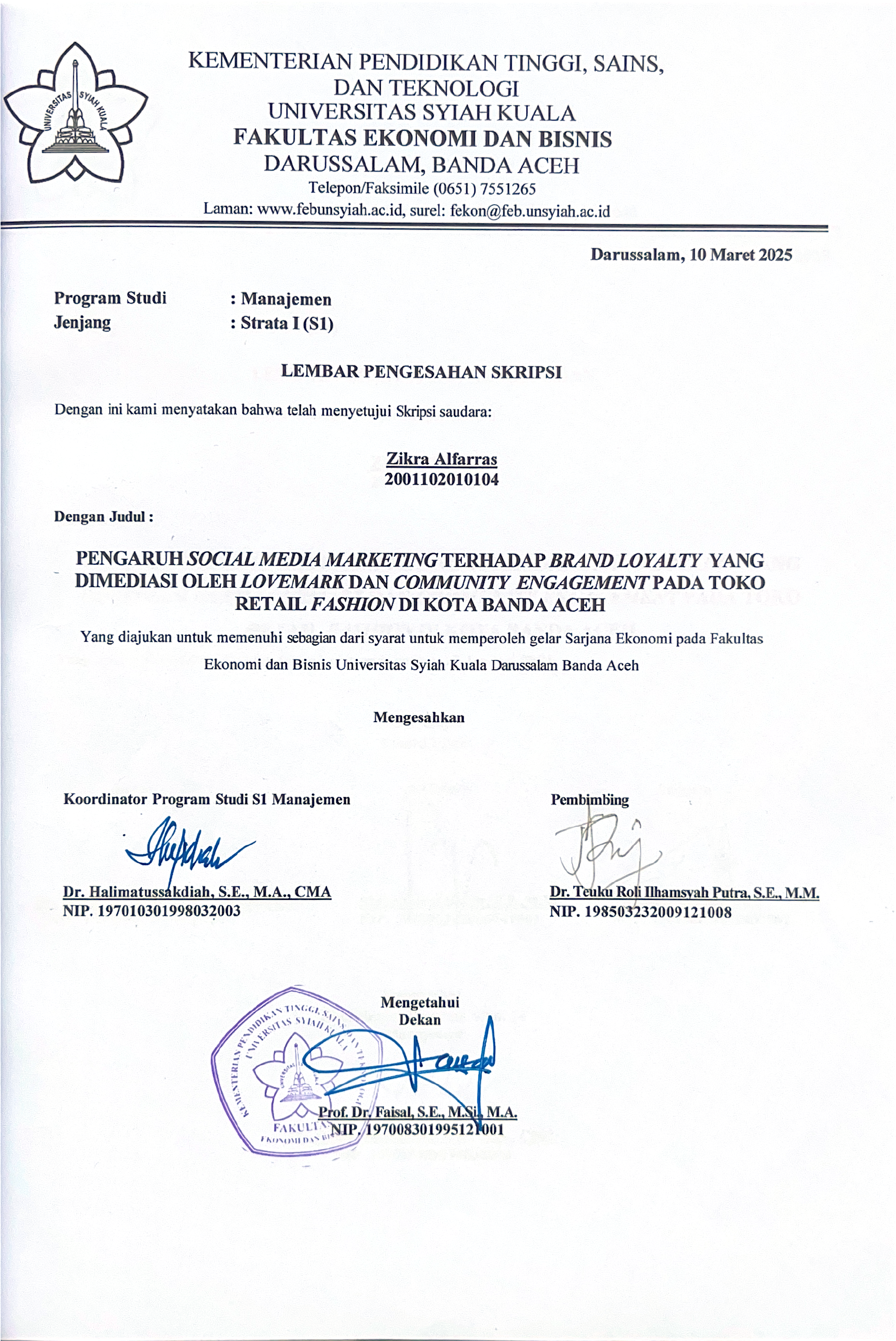 Baca Juga : PENGARUH SOCIAL MEDIA MARKETING TERHADAP BRAND LOYALTY YANG DIMEDIASI OLEH LOVEMARK DAN CUSTOMER ENGAGEMENT SEBAGAI VARIABEL MODERASI PADA PRODUK SOMETHINC DI BANDA ACEH (Aulianie Anwarie, 2024)